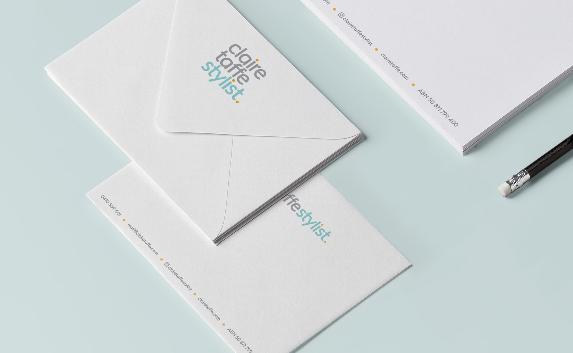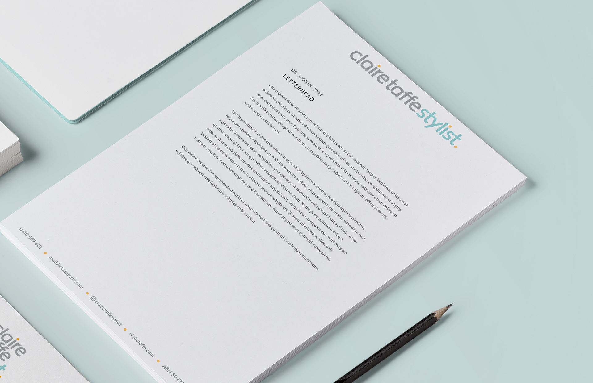 Branding and stationery design for a personal lifestyle and interior stylist. The branding projects includes a range of stationery like business card, letterhead and envelope.